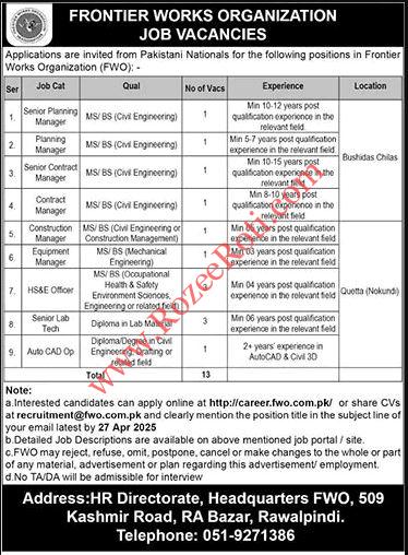 Frontier works organization | Frontier works organization jobs | Frontier works organization jobs 2025 | Frontier works organization careers | Frontier works organization official website | Headquarters frontier works organization (fwo) Rawalpindi | Jobs in frontier works organization | Frontier works organization jobs 2025 new | Frontier works organization Pakistan | Pak army frontier works organization (fwo) | Frontier works organization fwo jobs 2025 latest | Career in frontier works organization